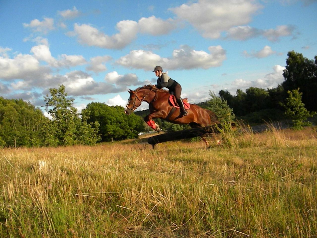 - Det bästa med sporten är variationen och att hästarna tycker att det är så roligt! Fälttävlan är ju ursprungligen en militärsport där man kombinerar de tre momenten dressyr, hoppning och terrängritt för att visa hästens styrkor. Hästen ska både vara alert, smidig lydig och modig. Många hästar som är hopptrötta kommer ut hit och blir sugna och glada igen av den naturliga hoppningen och att de får ligga på framåt. Terrängbanor är också väldigt bra träning även utan hinder, då här finns bra klätterbackar och varierade naturförhållanden.